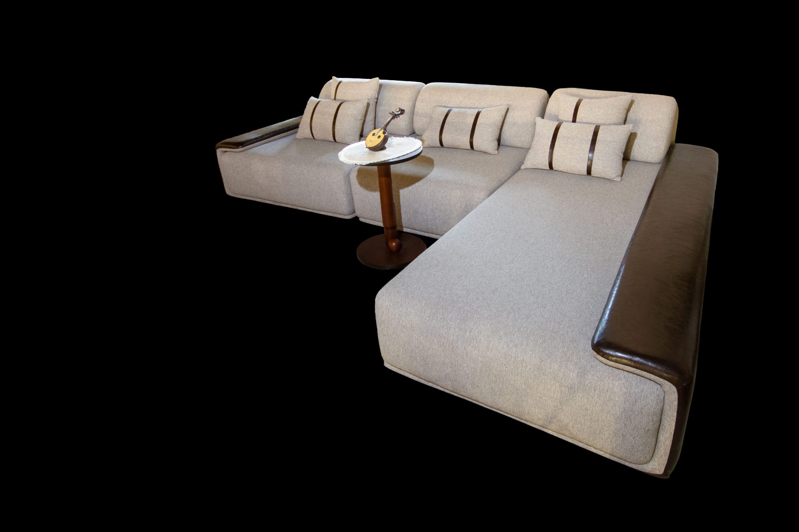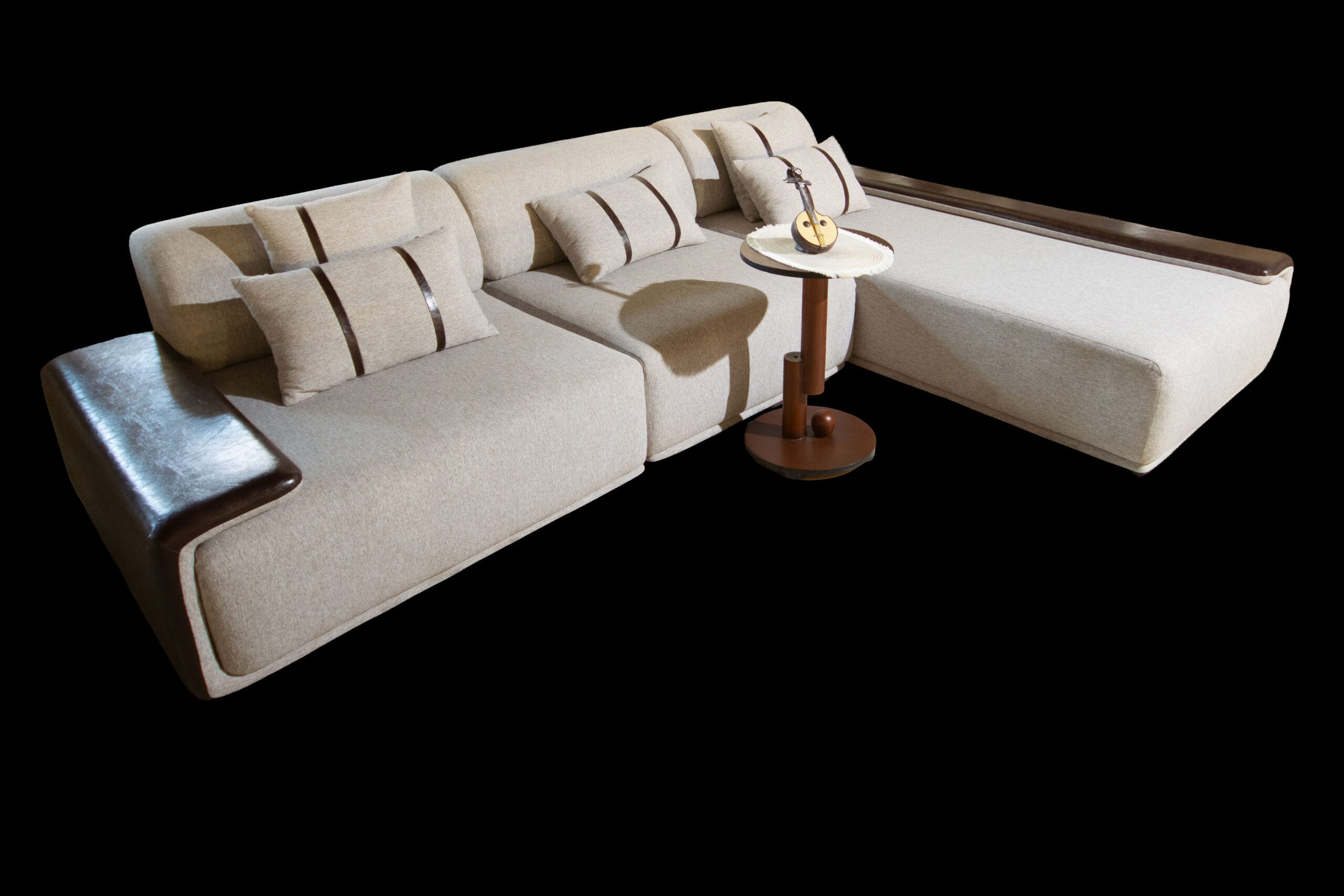 ركنه 350سم*250سم قماش كتان تركي* جلد بني اسفنج سوفر سوفت خشب زان
