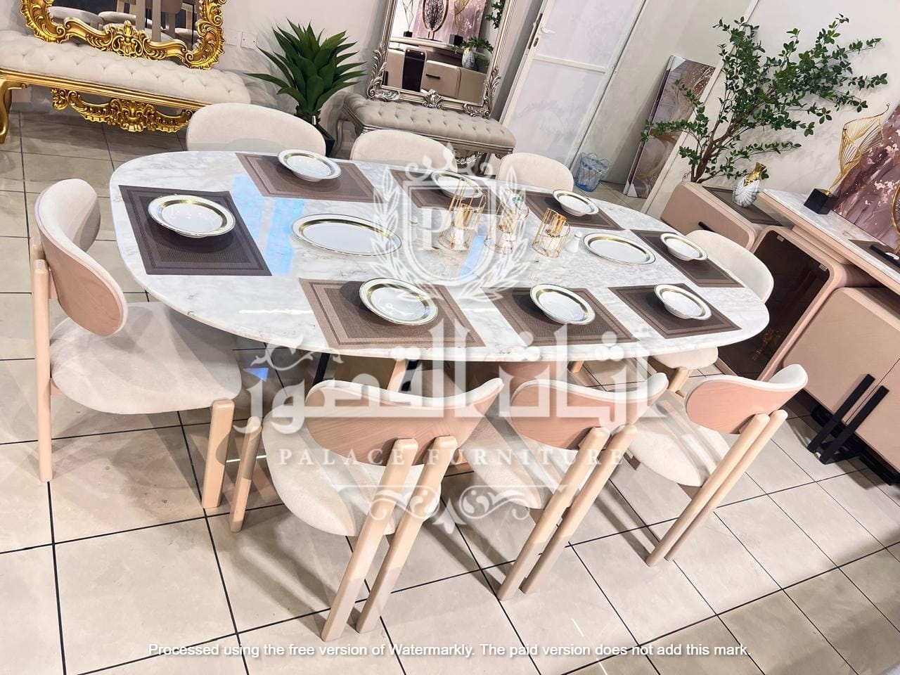 بوفيه 2 متر طاوله 10 أشخاص قشرة ارو طبيعي قواعد استالس خشب زان رماني رخام تركي