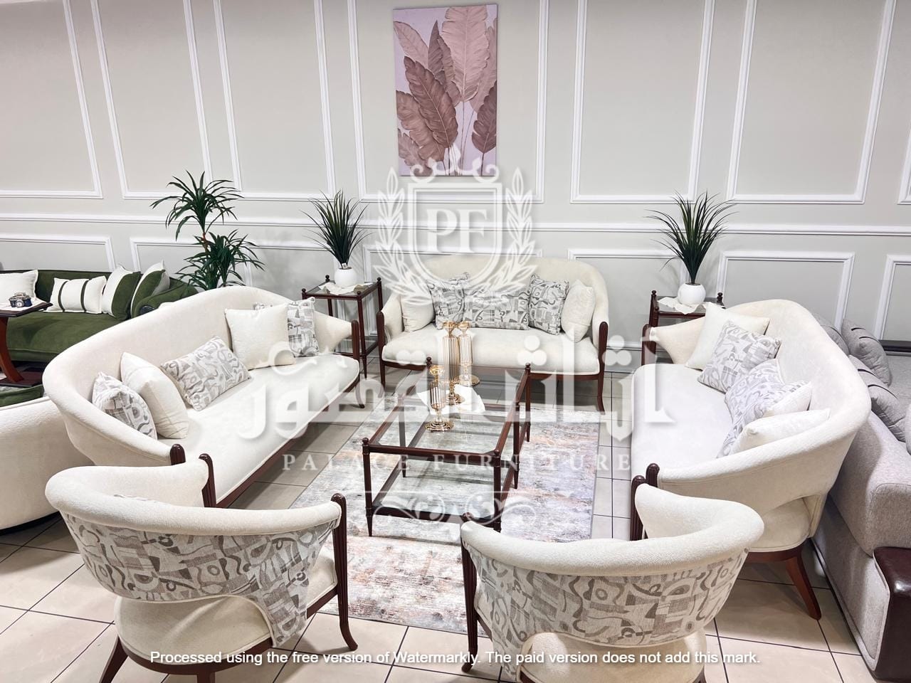 يتسع ل 10 أشخاص 2 كنبة ثلاثية +1كنبة صغيرة 2 كرسي مفرد +3طالوة
