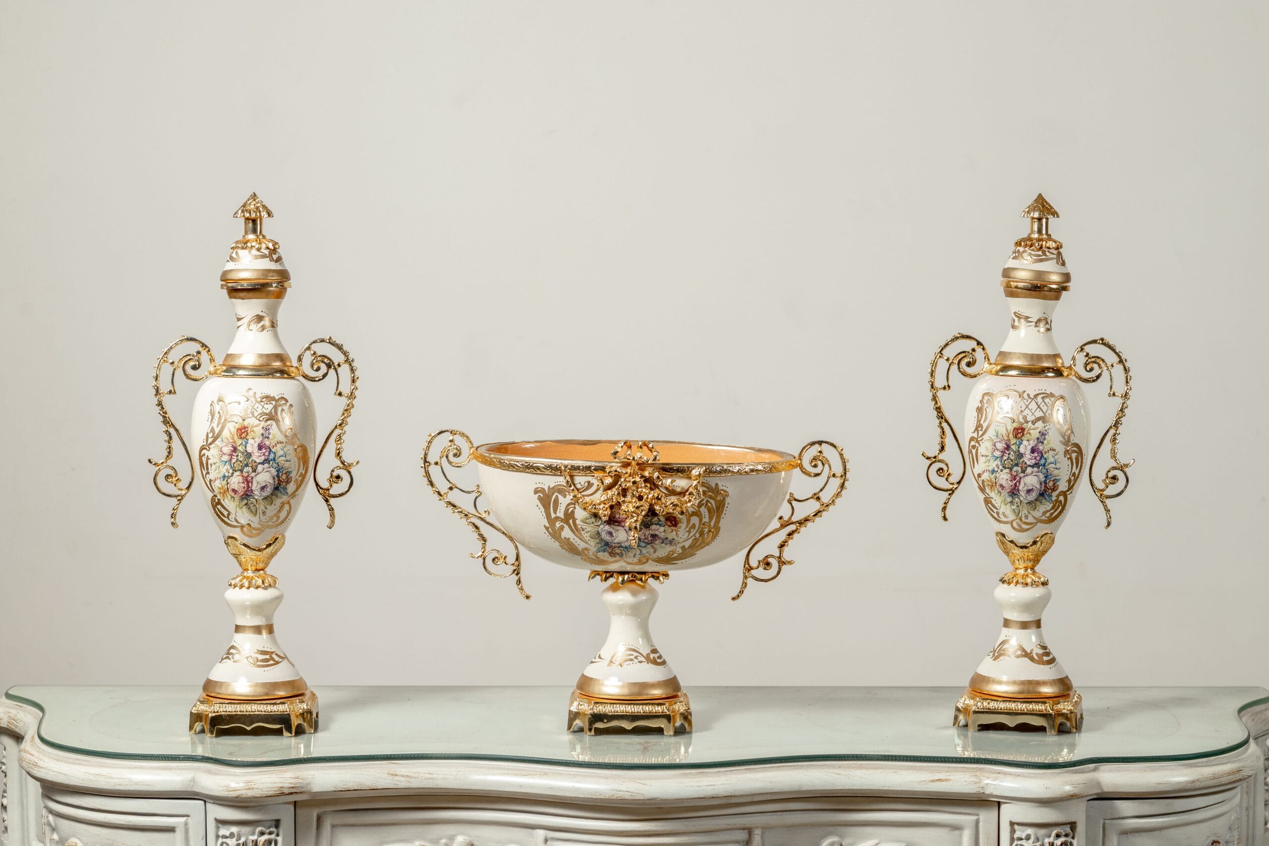 اقتني اليوم فازة خزف سيفر كحلي (طراز فرنسي – رسم طبيعي نابض بالحياة – زخارف وقاعدة نحاس معتّق) لإضافة المزيد من الرقي والأناقة لديكور إحدى الغرف في المنزل أو المكتب، من خلال تحفة فنية مصنوعة من خامات عالية الجودة بمستوى متانة قياسي.