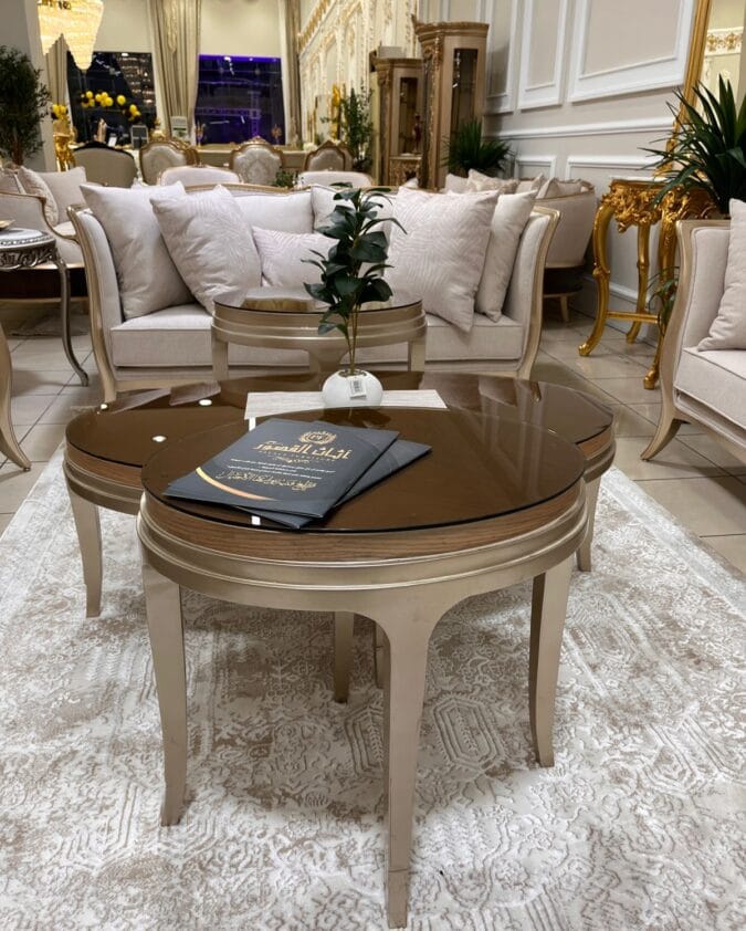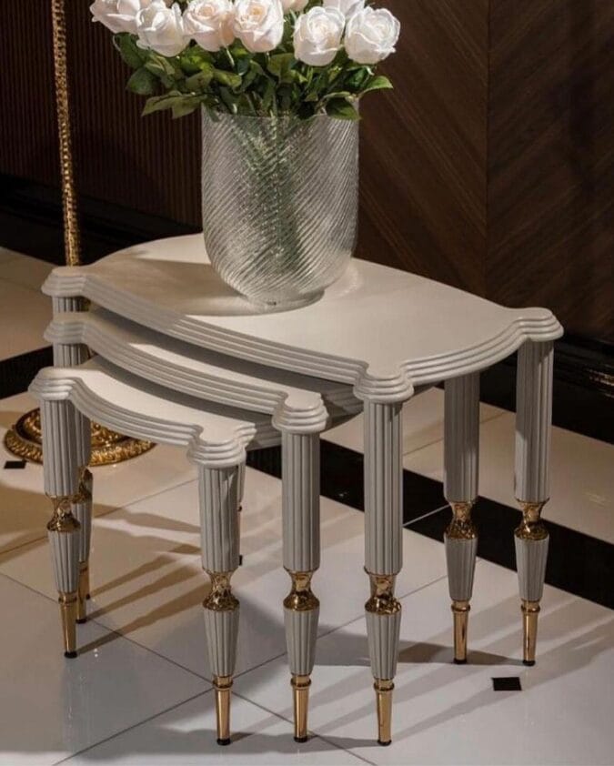 طقم طاولات ثلاثي متداخل (خشب ورخام)